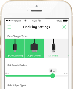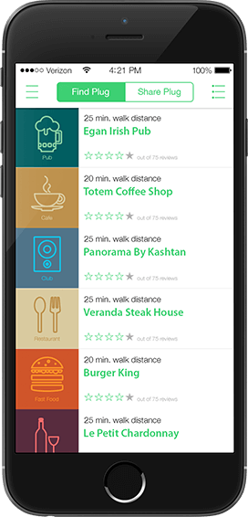 PlugSpot uses a fun way of tracking your activity. You earn watts for sharing your plug, or exchange them for being charged. The more you help – the more Watts you get. Watts help you develope your profile and level up. The most active users get special prizes, like power banks, chargers or an awesome Apple Watch!